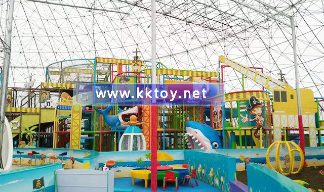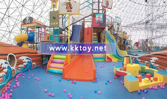 位于浙江省麗水市縉云縣黃龍風(fēng)景區(qū)內(nèi)的大型海盜船主題滑梯樂(lè)園,是由我司設(shè)計(jì)規(guī)劃實(shí)施安裝的項(xiàng)目,該項(xiàng)目配合著三大驚險(xiǎn)有趣的大型滑梯(魔鬼滑梯,彩虹滑梯,藍(lán)大波浪滑梯)和沙池 蜘蛛塔 豪華蹦床 槍炮城 手工制作區(qū)以及其他數(shù)十種游樂(lè)設(shè)施,適應(yīng)不同年齡段的兒童,S型彎網(wǎng) 時(shí)空隧道 爬梯 穿梭連接其中,高低橋 獨(dú)木橋 波浪橋 錯(cuò)落有致,將海盜主題的魅力體現(xiàn)到極致。