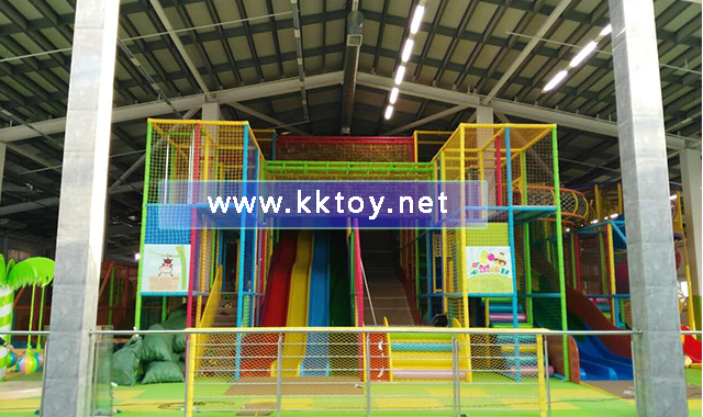 該大型兒童樂園位于俄羅斯哈巴羅夫斯克,占地面積400平左右,整體以彩虹滑梯,大波浪滑梯和三道波浪滑梯為主線,貫穿全場(chǎng),周邊搭配有蜘蛛塔,筒滑,大型海洋球池等設(shè)施,前方區(qū)域擺設(shè)旋轉(zhuǎn)椰子球等配套電動(dòng)設(shè)備,整套設(shè)施動(dòng)靜結(jié)合,該套設(shè)施經(jīng)過客戶和康康多次協(xié)商,最終敲定方案并于2016.12.10完成驗(yàn)收,安裝竣工。
