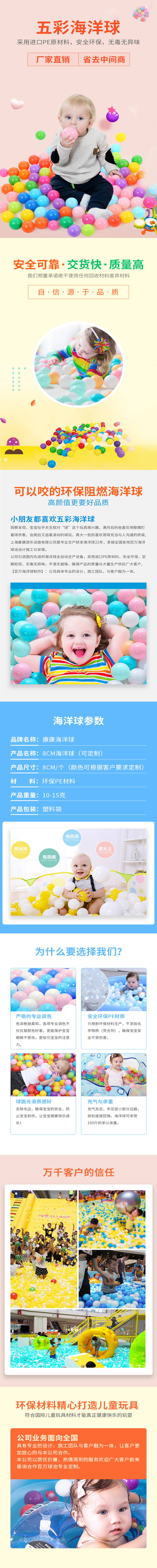 海洋球(波波球)是嬰兒游樂場產(chǎn)品,嬰兒帳篷,淘氣堡和野外活動(dòng)用品的配套產(chǎn)品,給嬰兒帶來智慧和樂趣。上??悼瞪a(chǎn)的海洋球環(huán)保健康,并且具有阻燃性,色彩亮麗,造型可愛,可以刺激視覺系統(tǒng)的良好發(fā)育,從而促進(jìn)大腦發(fā)育,激發(fā)寶寶智慧,鍛煉寶寶手腳靈活度,促進(jìn)寶寶骨骼的健康成長。